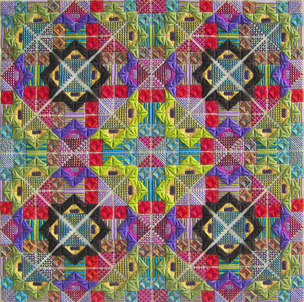 A Tessellation is a shape that repeats itself to fill a surface without leaving any gaps or overlaps. The name comes from the word tessella—the small tiles used in ancient Roman mosaics. Tessellations Again is a new exploration, second to Tessellations, my first such design. This instruction guide will introduce you to the principals of tessellations and the rules of symmetry. Based on this knowledge you will move into stitching the design. Texture and color are important in this design, and along with the other elements you learned, the design will be both a beautiful addition to your needlepoint gallery, as well as a great learning tool.