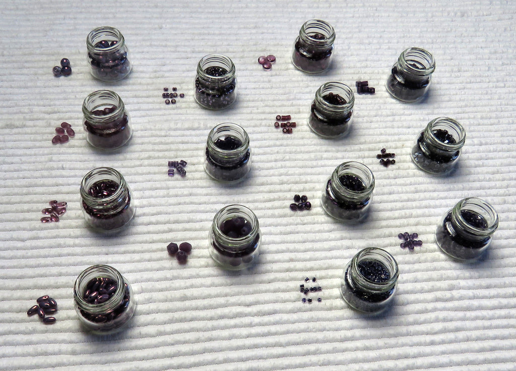 A collection of the best and most thoughtfully matched beads on the market today. This box has an assortment of Japanese larger size seed beads, glass beads and freshwater pearls and/or super colorful sequins. The deep and dark purples are magical, intense and exciting. The combination will get your creative juices flowing! Also, a Needlepoint Embellishment book with detailed illustrated and photographed explanations of how to beautify your needlepoint work with beads and other embellishments.