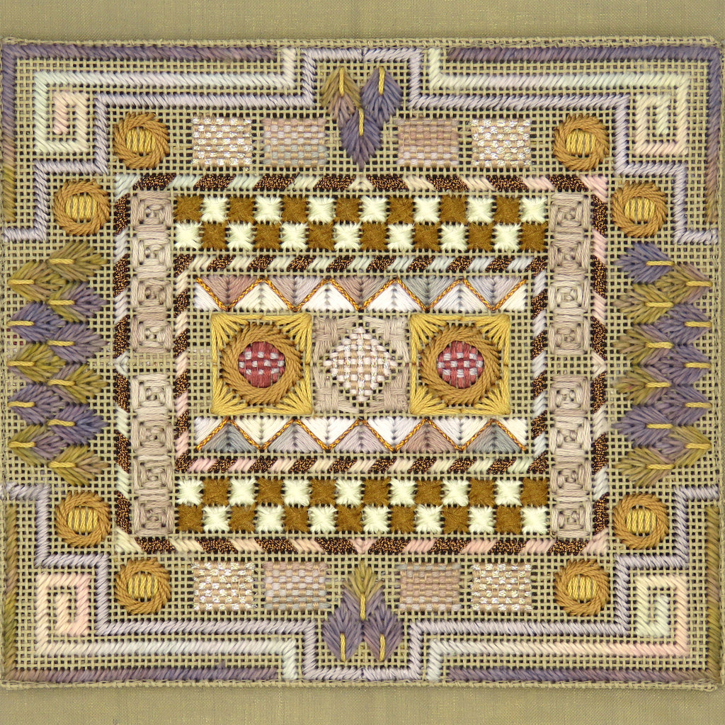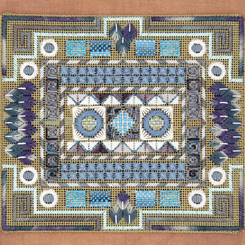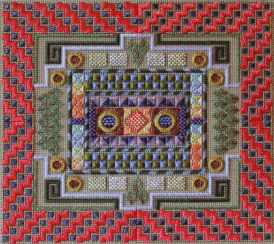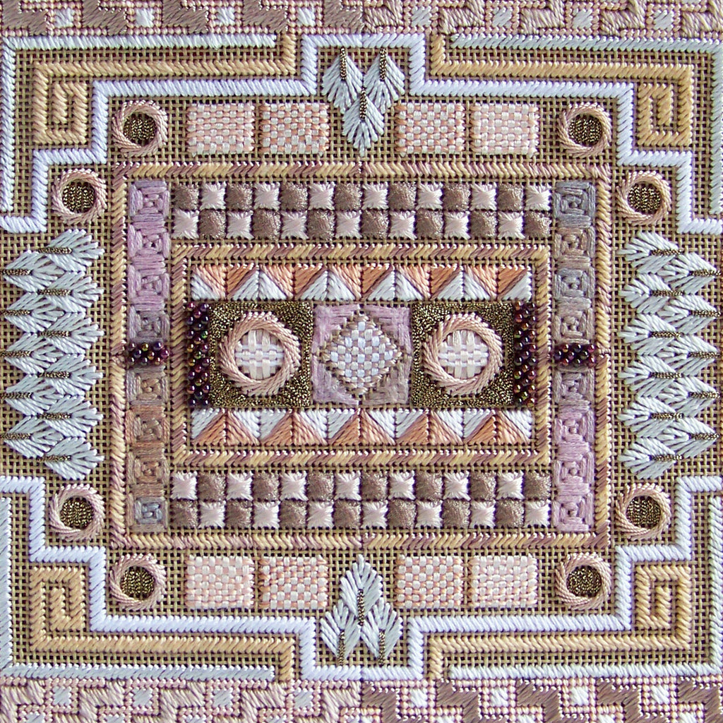 I love this design, it's a favorite. It comes in four (!!) colorways. Although located in the Middle East, Lebanon has majestic cedar trees that rise on the hills of the land. In winter they are covered by snow, white and regal, therefore the cream colorway. Summer brings heat to the same landscape, depicted in the red hot hues of the second colorway. The kit includes all the fibers and beads you will use in this design. The instruction book is easy to follow, diagrams, charts and detailed explanations are provided.