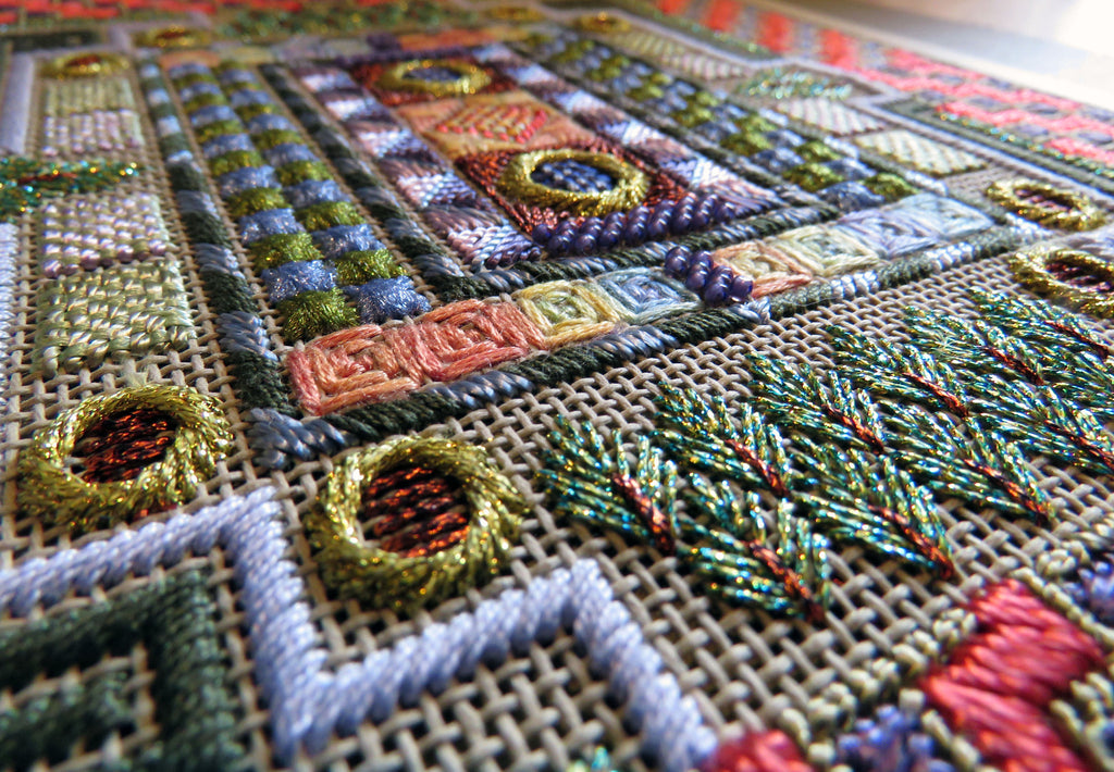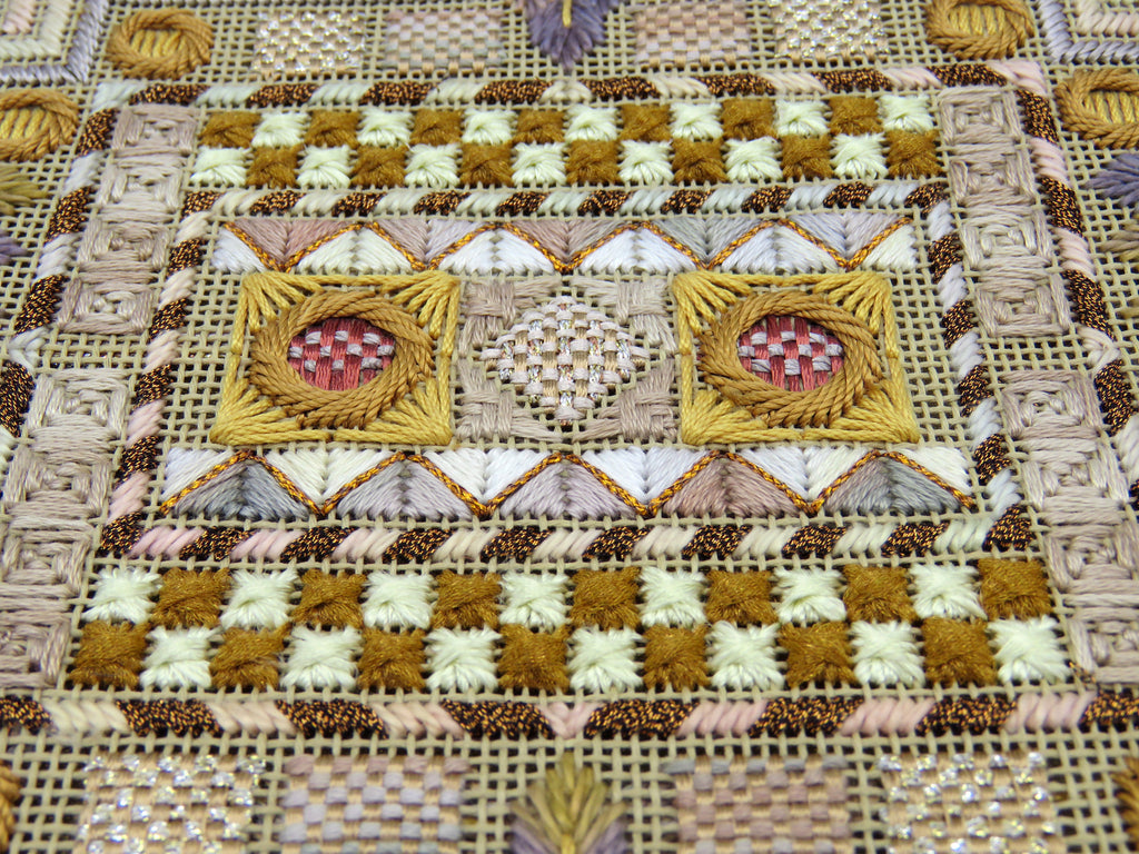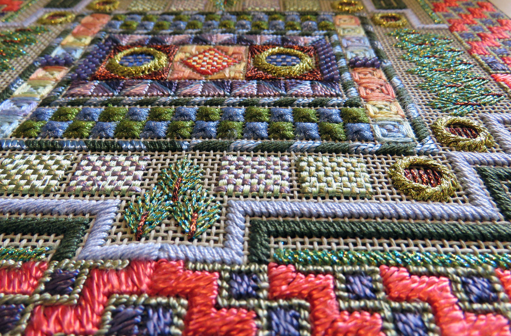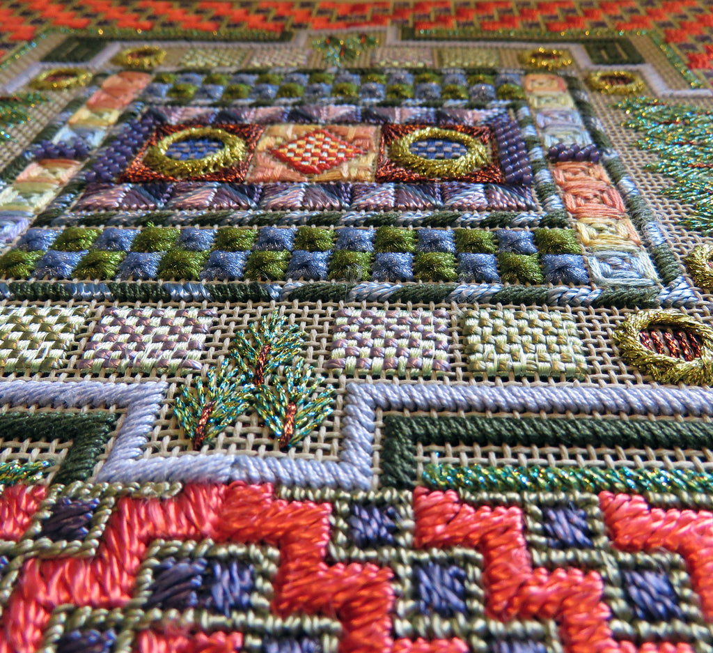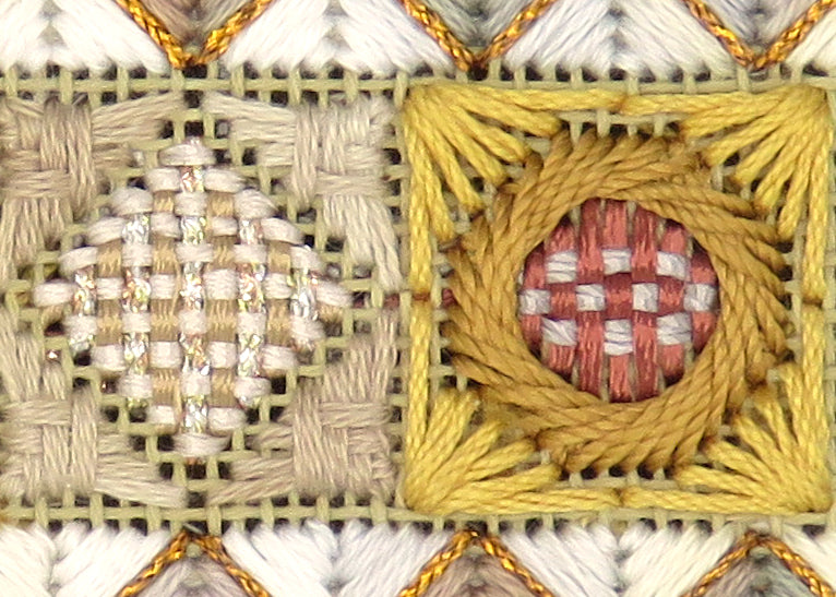 I love this design, it's a favorite. It comes in four (!!) colorways. Although located in the Middle East, Lebanon has majestic cedar trees that rise on the hills of the land. In winter they are covered by snow, white and regal, therefore the cream colorway. Summer brings heat to the same landscape, depicted in the red hot hues of the second colorway. The kit includes all the fibers and beads you will use in this design. The instruction book is easy to follow, diagrams, charts and detailed explanations are provided.