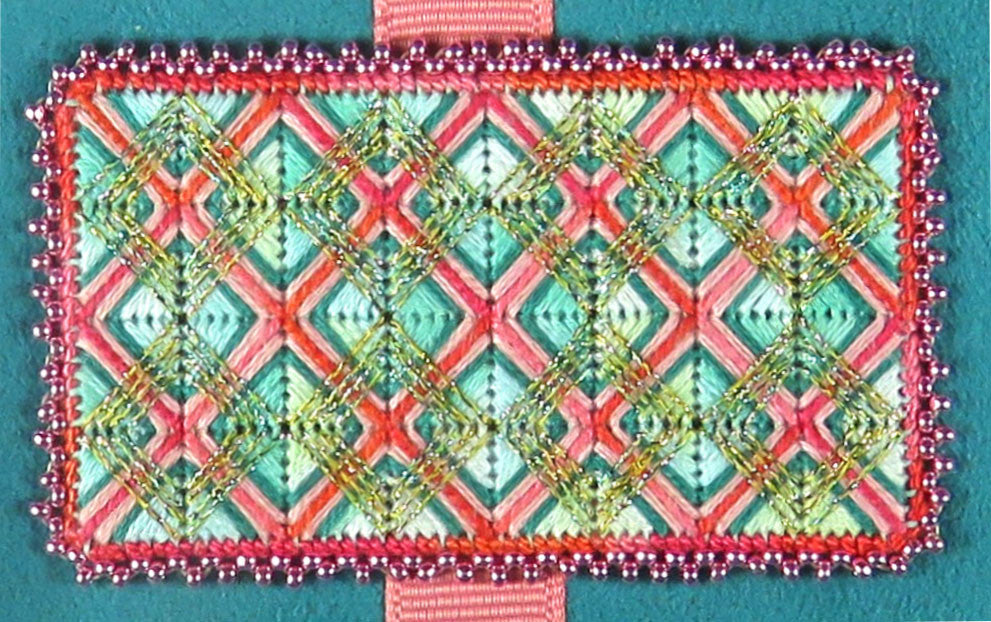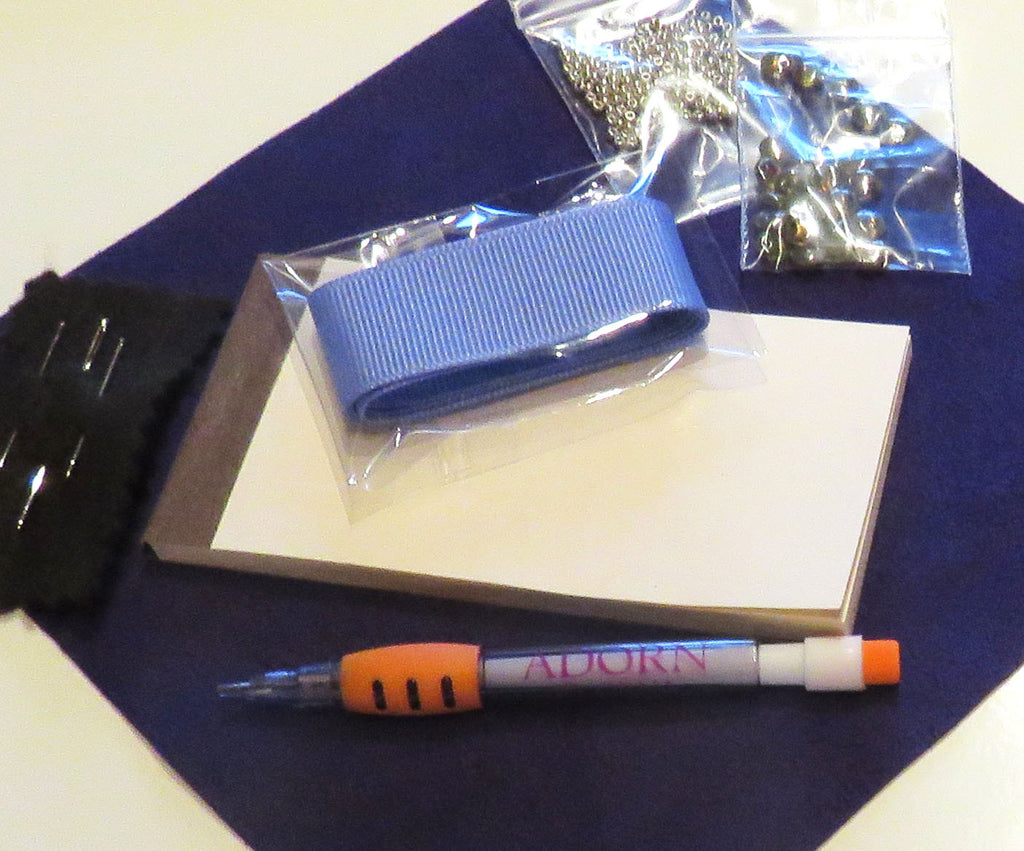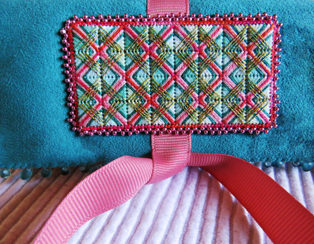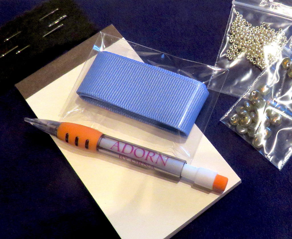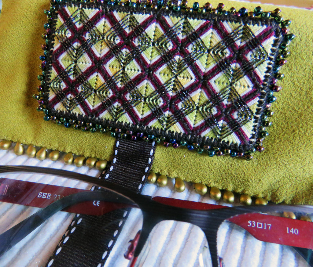 This lovely kit can be made into an eye glass case, a needle case or a notebook case. It's a small, quick stitch needlepoint piece mounted on Ultrasuede. In addition your kit includes Ultrasuede, felt, and precise instructions on how to put together one of these great personal accessories. For the notebook case you will get a matching notebook and Adorn pencil to fit into the case. A complete kit, including canvas and needles is very reasonably priced, making it a wonderful gift as well!
