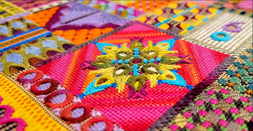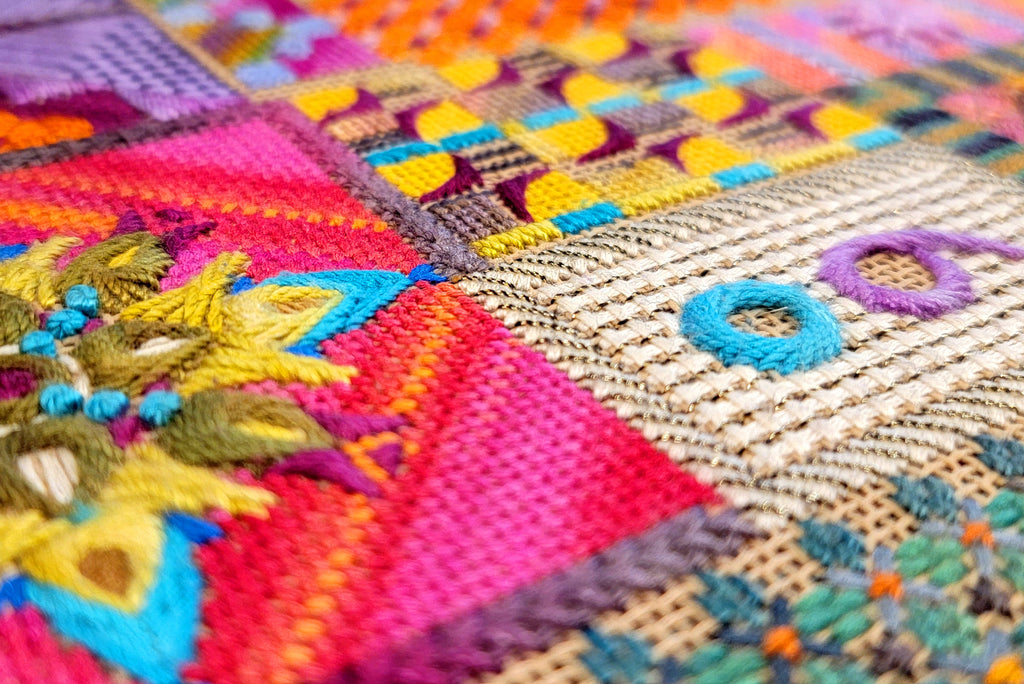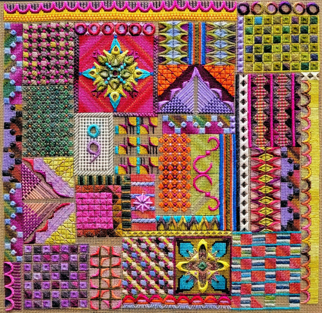 This counted geometric design will provide stitching challenges with several complex stitches. With Orna’s guidance, each of these stitches will be broken down and dissected so that students will learn the tricks of bringing out the best in each stitch. You will learn tips that you will take on with you to any projects you stitch in the future. Orna recommends this project for intermediate stitchers and the ability to read charts is a must.