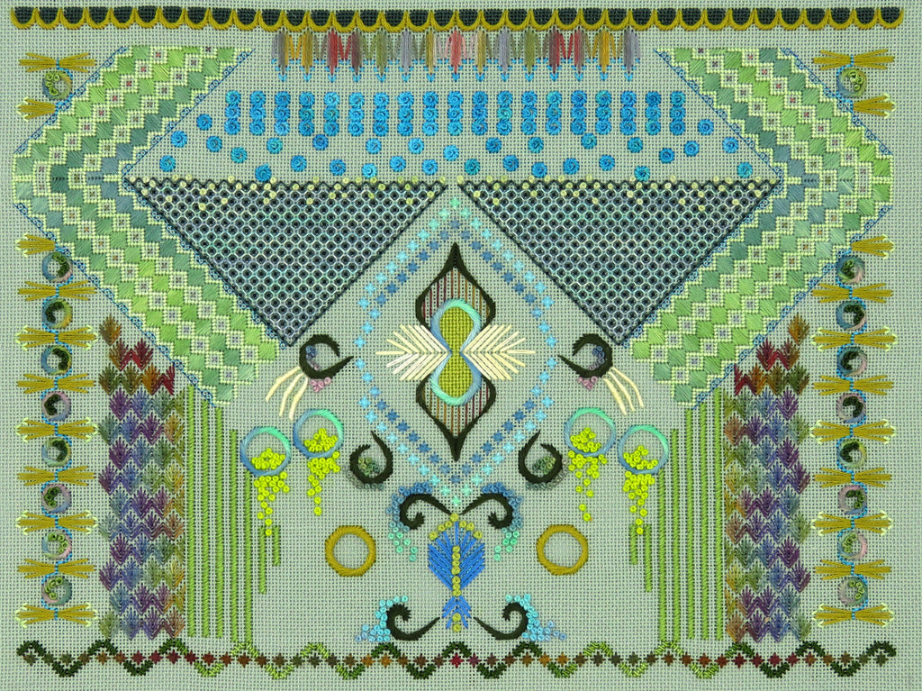 The Hanging Gardens of Babylon were one of the Seven Wonders of the Ancient World, located in what is today Al Hillah, Babil province in Iraq. This place has manifested itself into our art, our language and our ideal of paradise. It is from this imagining that my Hanging Gardens design was born. In this design, I endeavored to represent the straight solid forms of ancient architecture with the organic, lush lines of greenery and nature. I hope you will enjoy this trip to Ancient Babylon, and the design will give you as much joy to create as it did for me.