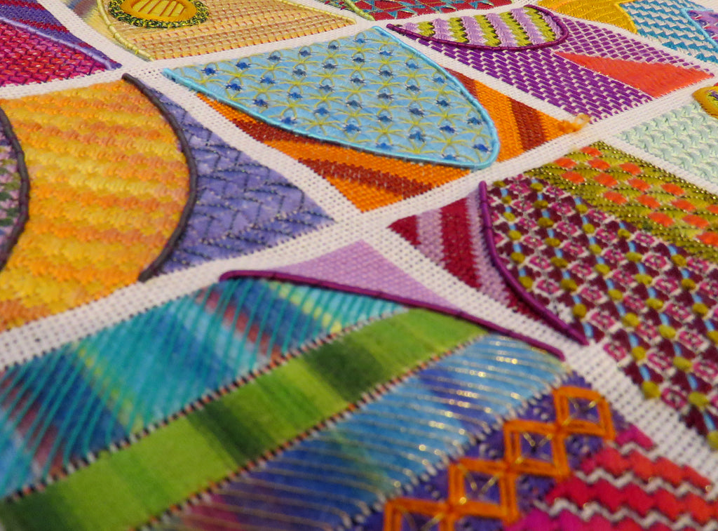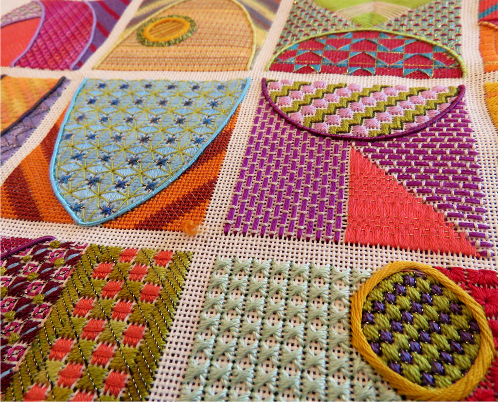 The class will include a beautiful, thoughtfully curated kit, including threads, Congress Cloth, an Instruction Guide, and a set of gorgeous color charts all laminated and presented to you along with your kit. You will feel the luxury and uniqueness of this class from the moment you open your special package!