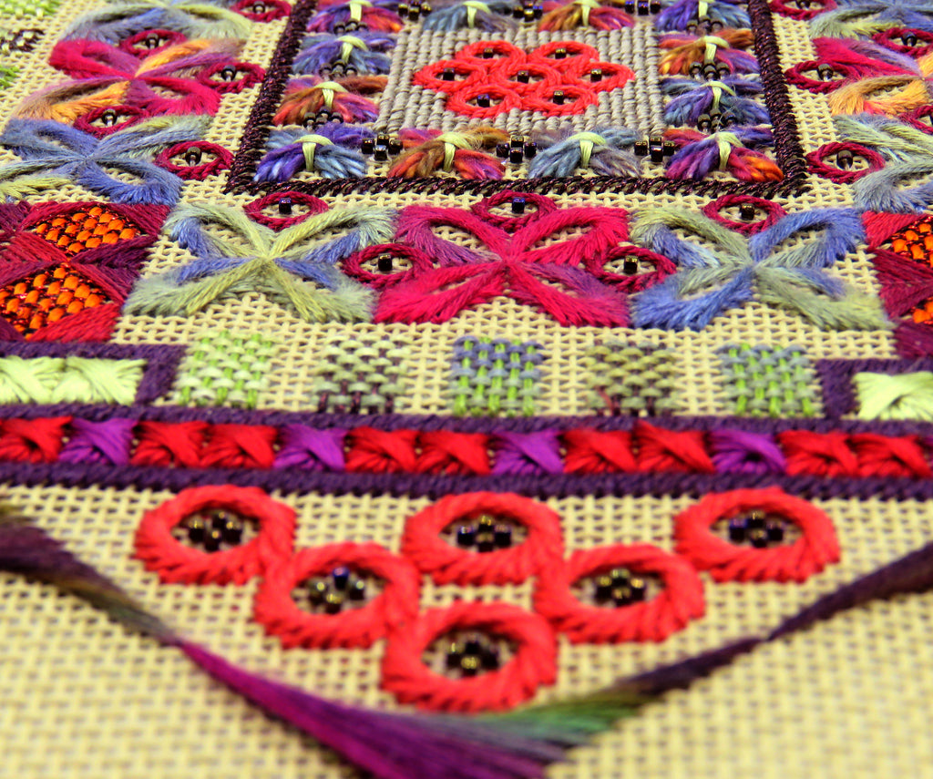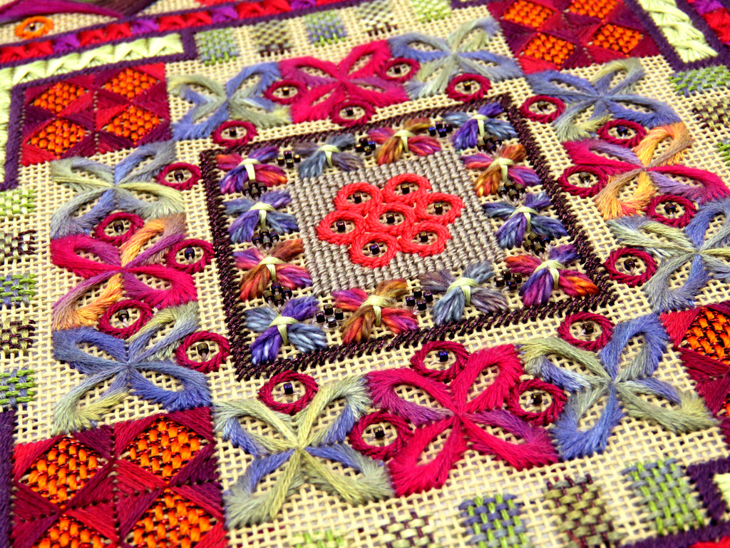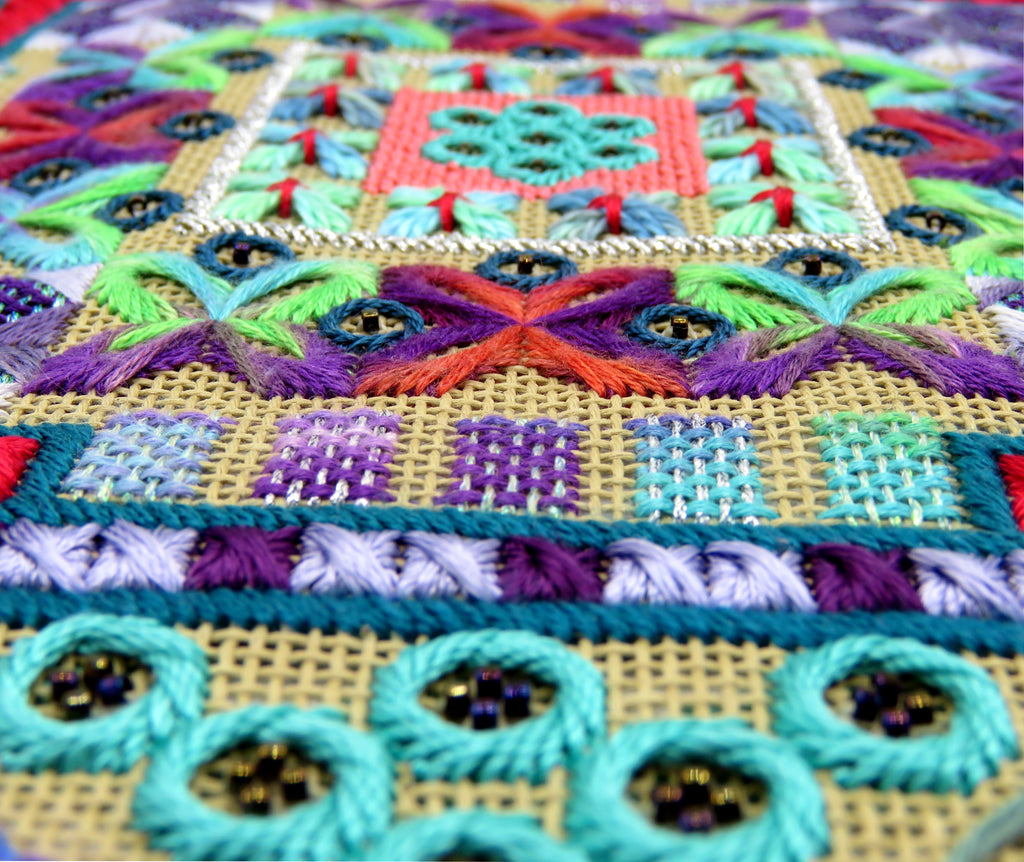 I began my needlepoint journey in 1995. I remember my first 10 designs so well. I worked day and night for weeks to get the lot of them ready. Now, after so many years, I have chosen to revisit them, their elements, style and color combinations. I have revisited them and with much thought from the vantage point of 22 years, I have brought elements of these first babies back again but in a new and updated manner. You will find them here, in Thoughts.